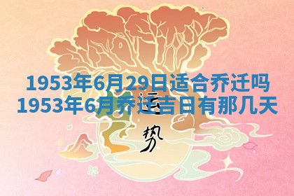 1953年6月29日适合乔迁吗,1953年6月乔迁吉日有那几天,1953年6月乔迁吉日一览表