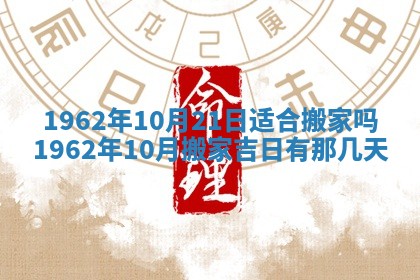 1962年10月21日适合搬家吗,1962年10月搬家吉日有那几天,1962年10月搬家吉日一览表