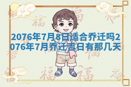 2076年7月8日适合乔迁吗,2076年7月乔迁吉日有那几天,2076年7月乔迁吉日一览表